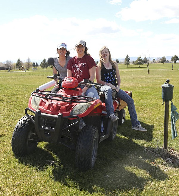 First year assistant coach Payge DeLaurenti took off on a four-wheeler with golfers Kaitlyn Woirhaye and Brooklyn Olson. “I think it’s good for the kids to get out here and work on their day off,” she said as they picked up branches.