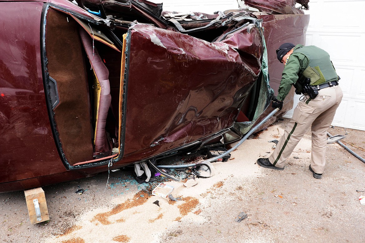 “It looks like he (the Buick) rolled, over end a couple of times, took out the fence and came to rest next to the parked vehicle,” said Weaver.