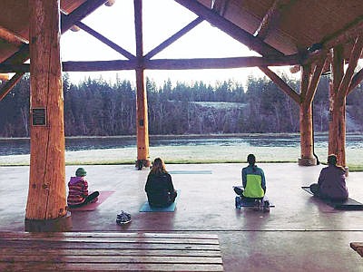 Libby area yoga instructor Danielle Spillman, who teaches a morning yoga class in Libby’s Riverfront Park, characterizes the park and its views as “awe-inspiring.”