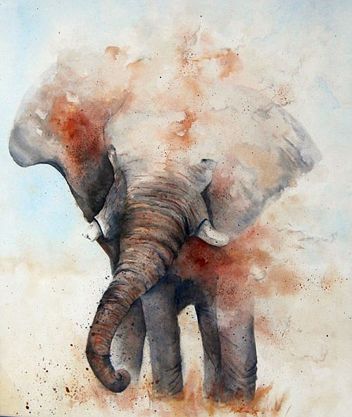 Luedke says the watercolor painting “Elephant Dust Storm” was inspired by nature and her grandmother.