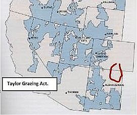 During the times of my youth on the family ranch, I had no idea that the land on which we made our living was not ours. It belonged to the U.S. government as was part of the Taylor Grazing Act. The extent of the act is seen in the figure. I circle in red the part of America where I was born and lived my first 20 years. This map does not show Bureau of Land Management (BLM) land.
