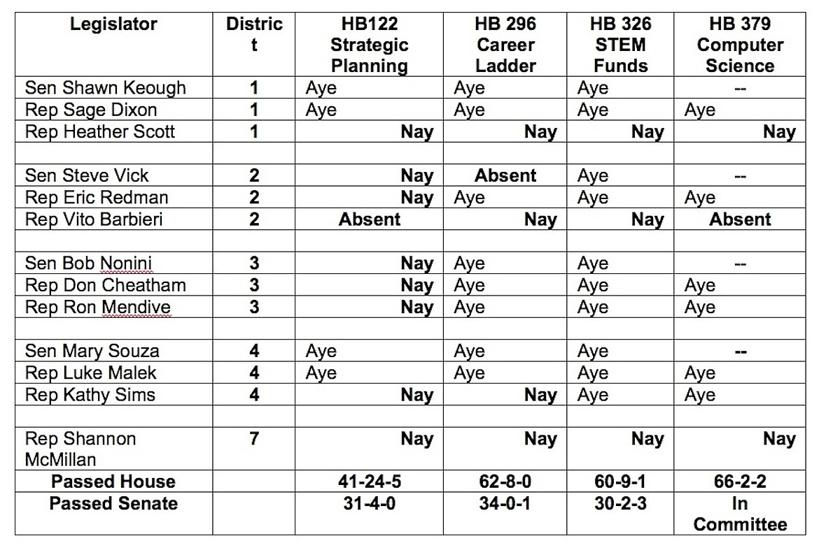 After looking at these bills, one thing became blatantly clear. North Idaho has a small handful of legislators who consistently vote against education or are absent when important education bills come to the floor. Most often, these legislators are clearly in the minority. Here’s how your North Idaho legislators stack up to their colleagues throughout the state: