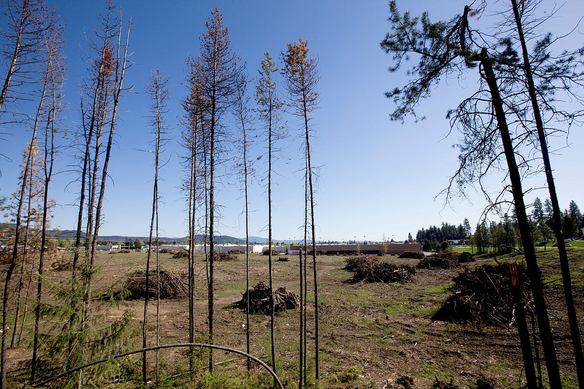 The previously densely wooded area in Coeur d'Alene north of the Silver Lake Mall and adjacent to Target and Ross was thinned out last year when the property owner, Spokane developer Harlan Douglass of Douglass Properties, cleared it because of its history of homeless encampments.