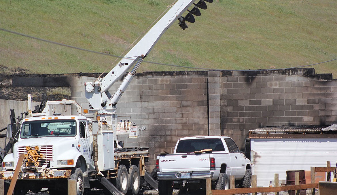 Firefighters with Grant County Fire District No. 5 responded to the fire in the 5400 block of Mae Valley Road about 3:30 a.m., according to Grant County Fire District No. 5 Chief Dan Smith. Smith said in total the district had nine pieces of equipment at the scene to combat the fire, which was under control by firefighters about 4:30 a.m. GCFD No. 5 crews were at the scene until about noon on Wednesday. Grant County PUD crews worked throughout the day on Wednesday to fix power poles near the building that were damaged by the fire.