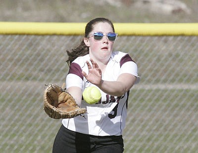 Center fielder Tana Thill top of second inning, first of a doubleheader vs. Bonners Ferry March 25, 2016.
