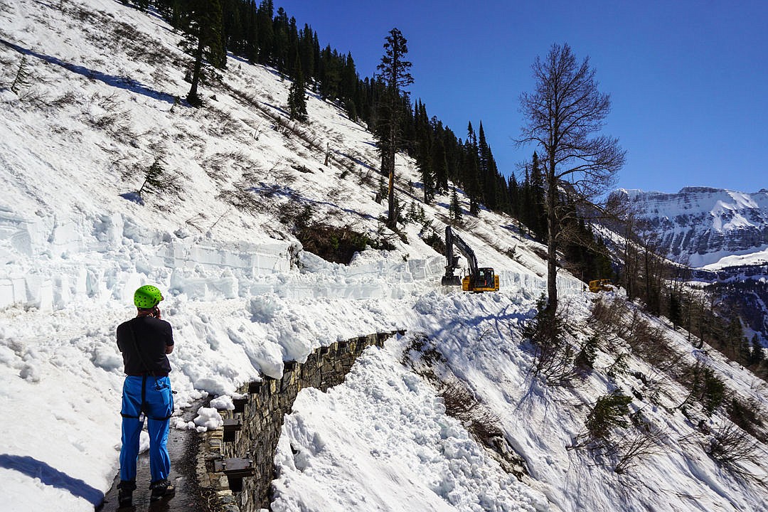 Park plow crews stopped plowing on Thursday because of the high avalanche danger and a slide that went over Haystack Creek. The plows are at Siyeh Bend on the east side and pioneering near Grouse Point on the west side, before they stopped.