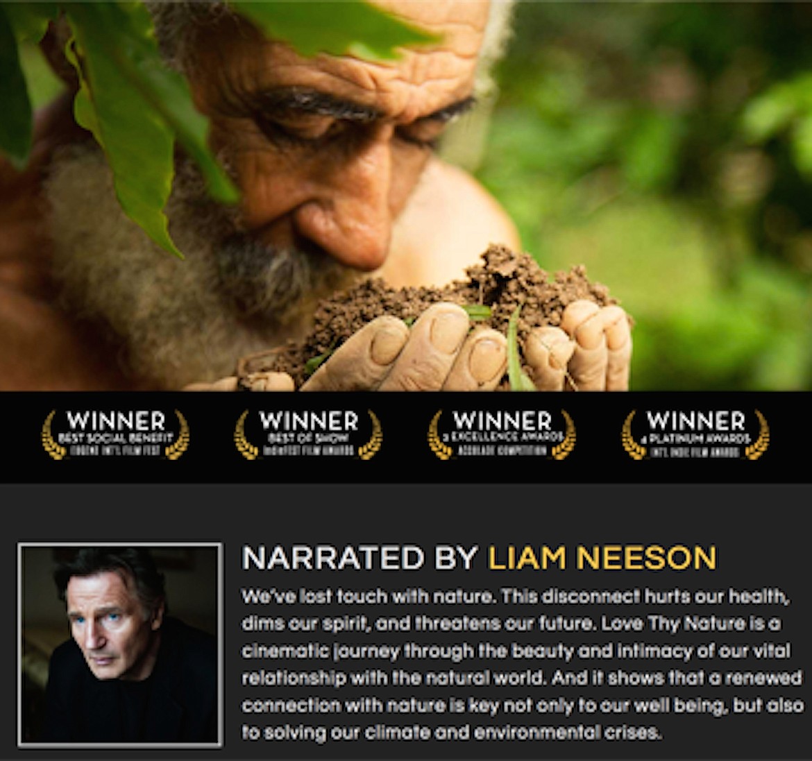 It’s easy to celebrate Earth Day in Sandpoint. We are luckier than most and we can celebrate it easily when we step outside to forests, mountains and that amazing lake surrounding us. We still need the gentle reminder not to lose touch with nature by stopping for a minute in our busy routines to feel the grass beneath our feet and breathe in the clean air we are so fortunate to have. When we life gets busy we feel a “disconnect.” This disconnect hurts our health, dulls our spirit, and threatens our future. Narrated by Liam Neeson, “Love Thy Nature” is a cinematic journey into the beauty and intimacy of our relationship with the natural world.
