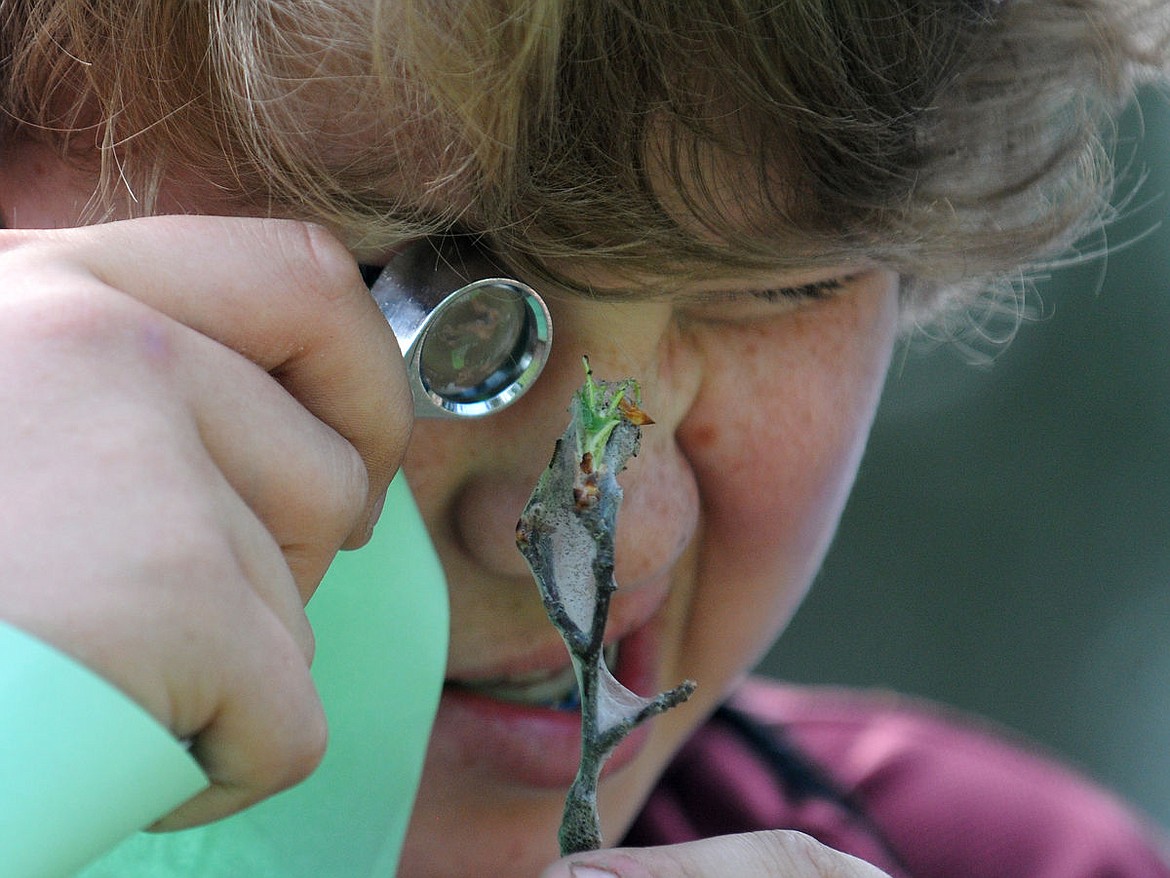 Glacier ninth-grader Gage Southland inspects a caterpillar nest during the second annual BioBlitz at Flathead Valley Community College on Saturday. (Aaric Bryan/Daily Inter Lake)