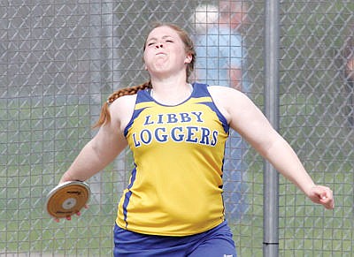 Shelbie McLinden with a 97 1-1/2 foot throw, Libby Invite April 23.
