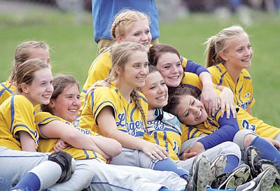 A very happy Lady Logger softball team after defeating Eureka 18-0 Friday, April 22.