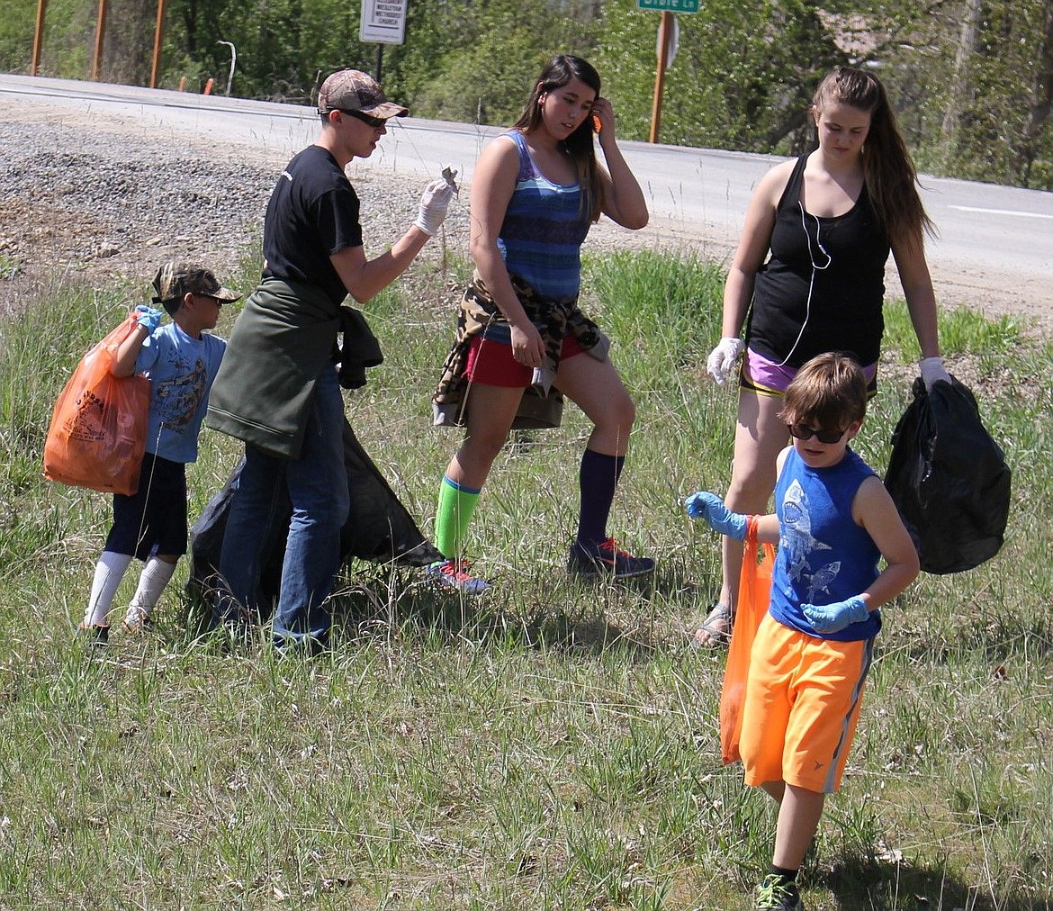 Buses took them to places near Alberton including Petty Creek and the Natural Pier Bridge. Others walked through areas of town like the stretch east of Railroad to I-90. Several bags of trash had been collected after two hours. The students returned hot and thirsty, as well as a little pink, since temperatures reached 80 degrees in the high mid-morning sun.