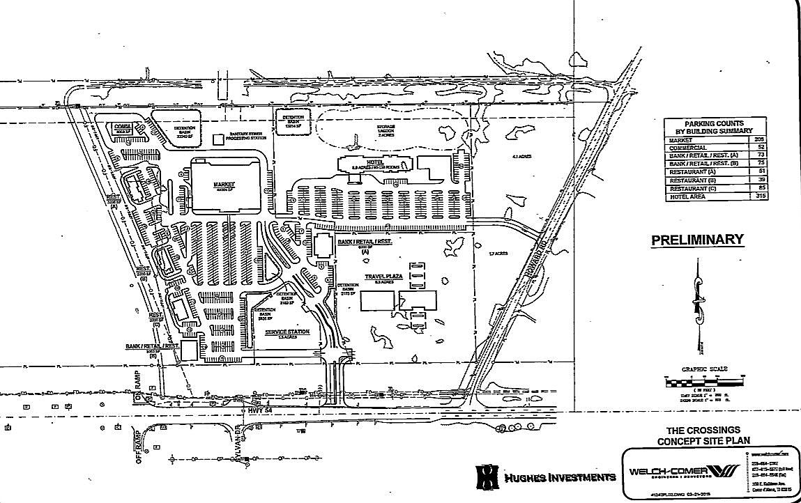 The Crossings would be developed 37 acres east of U.S. 95 near the northwest corner of Highway 54 and Howard Road. A conceptual site plan was submitted to the Athol City Council last week by developer Hughes Investments.