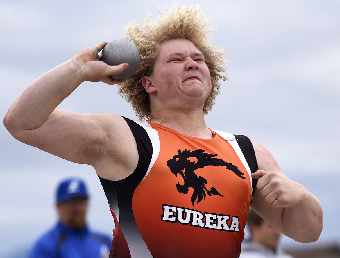 Shot Put — 1, Owen Davis, Eureka, 47-0. 2, Ross Coleman, Bigfork, 46-2. 3, Kaelan Yanak, Eureka, 46-0. 4, Isaac Sturdevant, Eureka, 45-6. 5, Thomas Trefney, Glacier, 44-8. 6, Nathan Hammer, Glacier, 43-7.