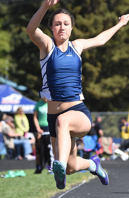 Glacier's Abi Fiske takes off in the triple jump at the ARM Invitational Saturday in Whitefish. (Matt Baldwin/Whitefish Pilot)