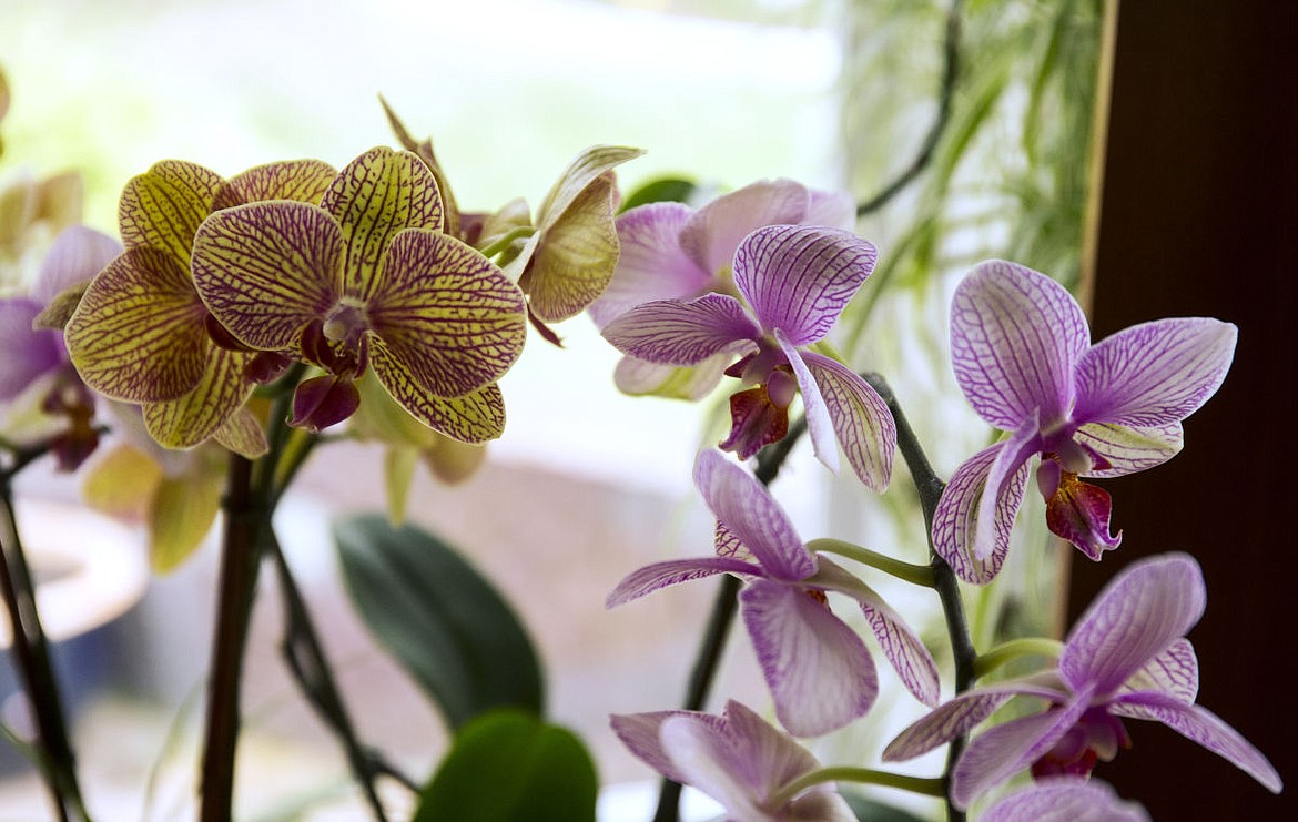 In the winter, Jojo moves her orchids to a giant window well where they receive ample light and maintain a cool temperature. In the summer, she is sure to draw the curtains so the sun can't damage their delicate petals. She mists them every evening and spends about five hours a week watering and tending to them.