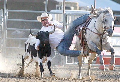 Dan Mulkey of Dell turned in a time of 9.2 seconds, good for second place in the steer wrestling and a payout of $409.