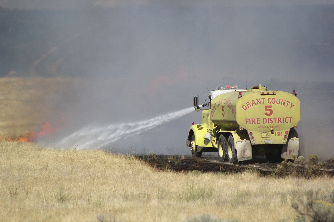 The fire started in the yard of a residence in the 8300 block Neppel Road Northeast, about seven miles north of Moses Lake, about 3 p.m. The cause is under investigation.