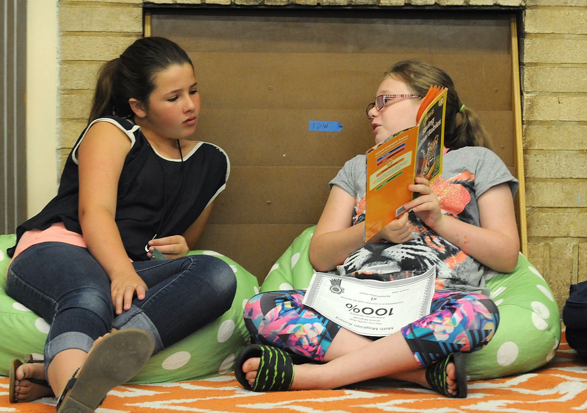 Hedges fifth-grader Emma McGough reads to former Hedges student Natalie Mills during the Hedges Summer School on Wednesday. (Aaric Bryan/Daily Inter Lake)