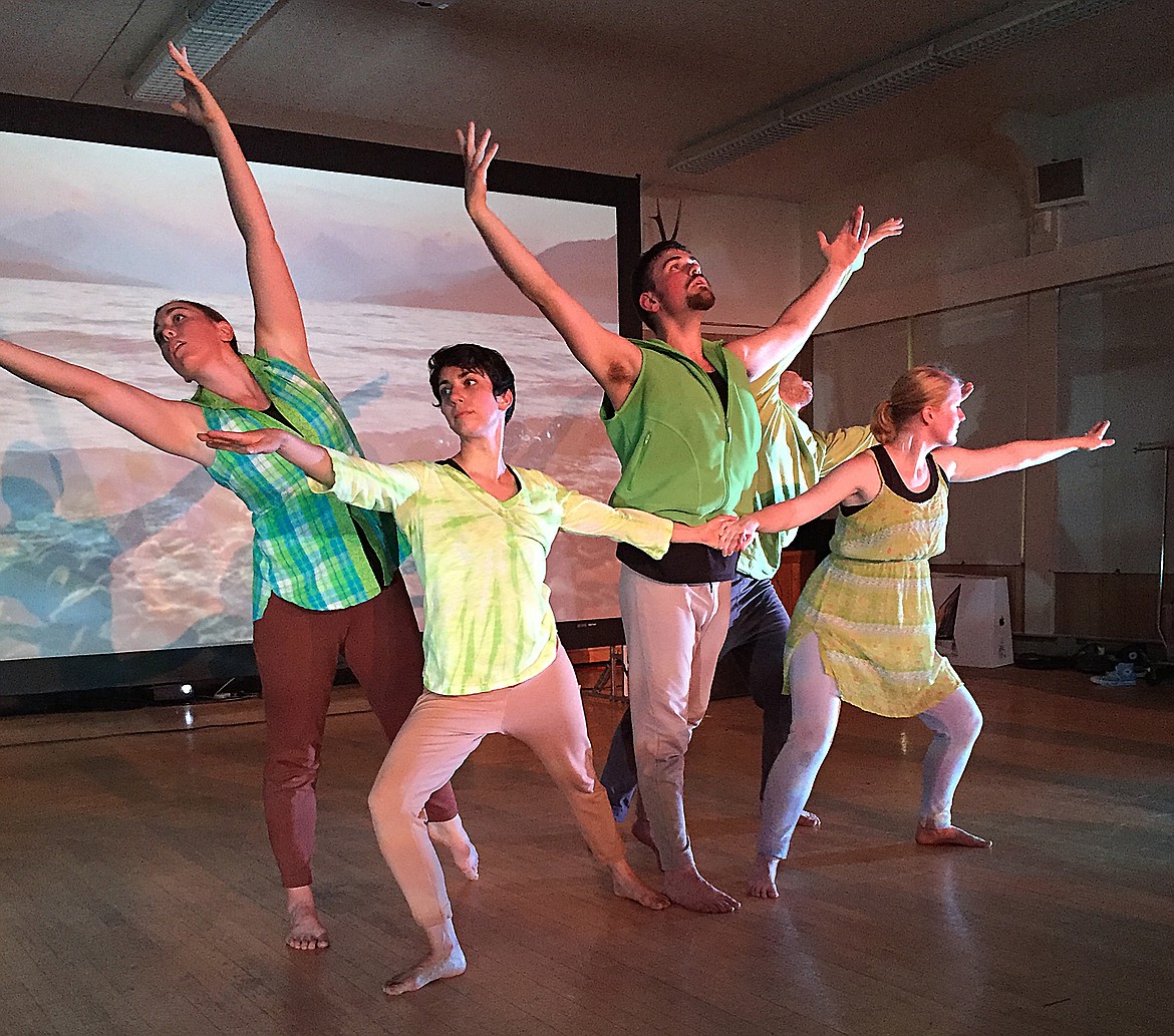 To that end, one of the dances in the performances shows the dancers tangled up in an extension cord, attempting to break free, while another places the dancers in a freshwater glacier stream as fish, to show the importance of ecology.