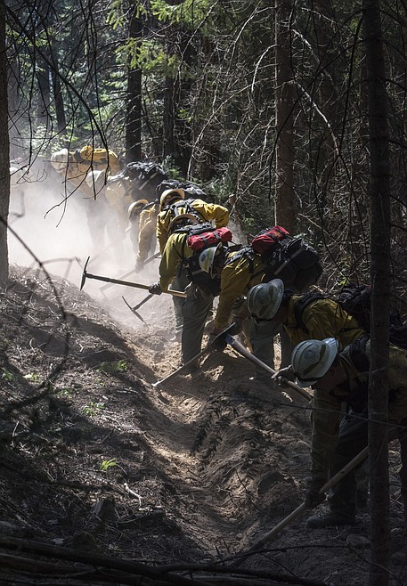 Chief Mountain Hot Shots construct a hand line near the old Silver King mine. August 4, 2016.