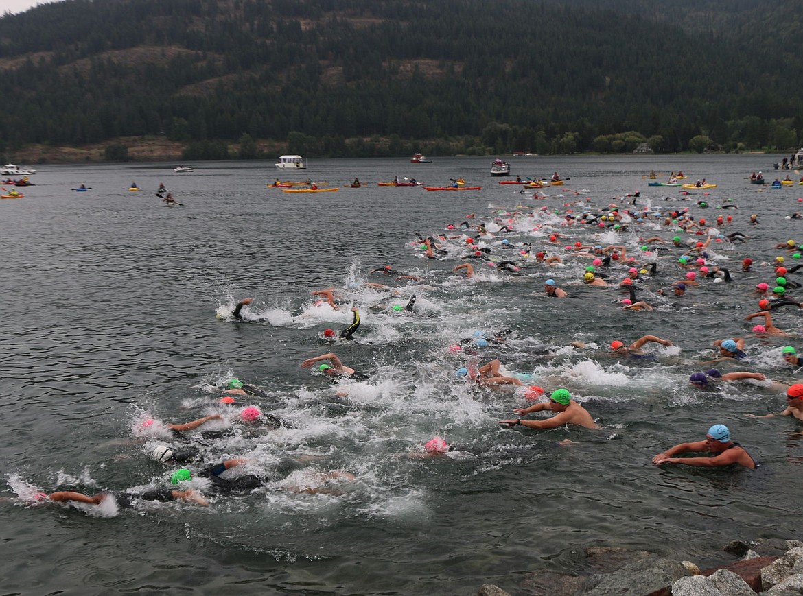 The record is held by John Weston of Florence, Mont., who finished the 1.76-mile swim in 33 minutes, 19 seconds. Weston, like Kananowicz also competed in the Olympic trials “way back in the day,” and swam for the University of Washington swim team, race founder Eric Ridgway said.