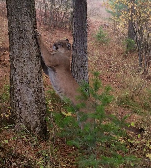 When the cougar, located on the east end of the pond near a woodsy area, took off, three more cougars appeared and followed. The sighting was around 6:45 p.m., and Rick said he was about 100 feet away from the animal.
