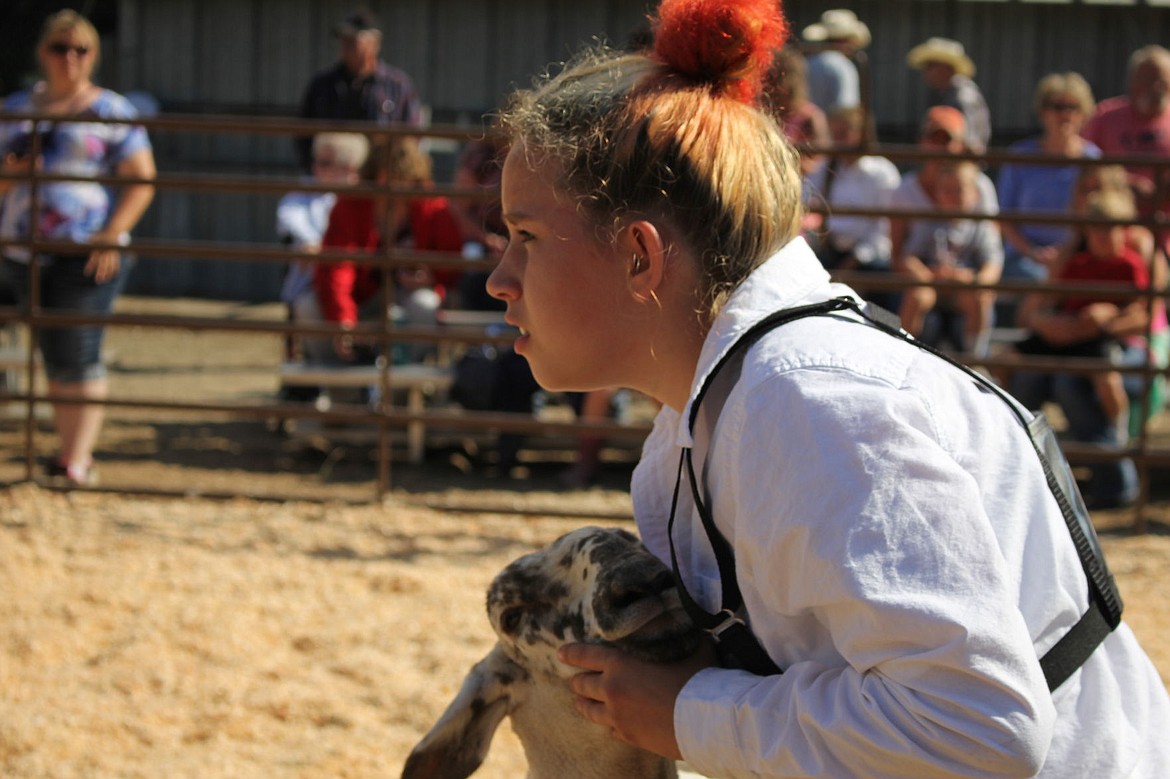 The most popular category, pigs, were primarily Duroc and Hampshire mix. With a few Yorkshire breeds in the blend. Crispy Bacon, Toots, Sara Lee, Lola, Nemo, Virginia (Ham), Pig Newton, Blueberry, Gumbi, and Dory grunted, squealed, and strutted around the pen. While Abbi Boggess, from Great Falls, judged the pork for body weight, size, and structure.