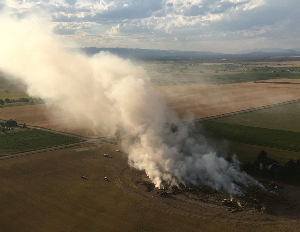 Somers-Lakeside Fire Chief Tom Havens said roughly 600 bales of hay caught fire along Lower Valley Road on Sunday morning after sitting stacked in the sun for three weeks.