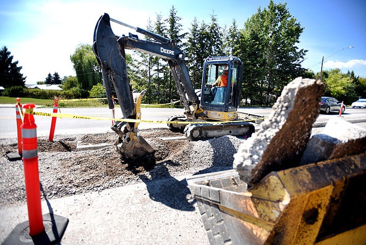 Sidewalk construction has begun on Three Mile Drive in Kalispell on Monday, August 15. The construction is making residents who have seen students walking to Kalispell Middle School without a sidewalk for years very happy. (Brenda Ahearn/Daily Inter Lake)