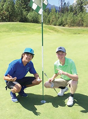 Member guest champions for 2016 Dylan Beckman, left, and Ryggs Johnston on hole No. 11 after Dylan's Hole in 1. (133 yards pitching wedge used witnesses - Ryggs Johnston, Jonny Cielak, Joseph Potkonjak)
