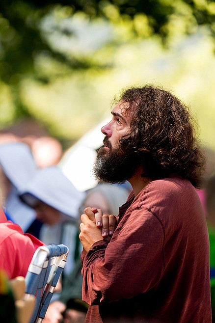 The silvery sound of bells upon his regalia could be heard with every movement as he proceeded through a crowd gathered on the lawn of the Old Mission in Cataldo. Kitt, a member of the Coeur d'Alene Tribe, performed the Cup Dance to honor his ancestors and celebrate the "bread of Heaven."
