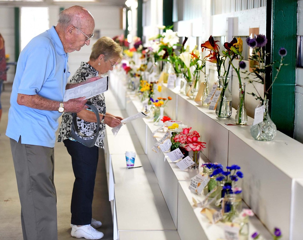 The Floriculture building had more flowers than people Wednesday morning as two judges circled tables of floral arrangements. Before food stands opened and rides began to turn, the judges spent hours looking for each designer’s intent for the hundreds of variations of flowers that filled the room.