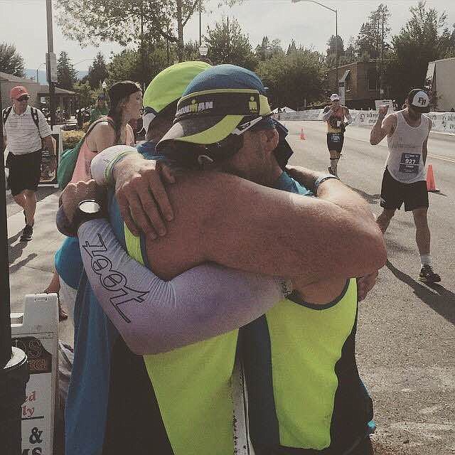 Physically drained, Levi softened with emotion as he fell into Terry’s arms, a brief stop before gutting out his second consecutive finish.