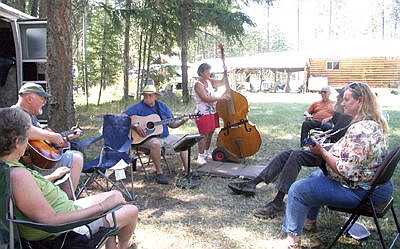 From Aug. 14-21, musicians and bluegrass fans gather in Snyder’s Field to play and enjoy bluegrass music. The music usually started in the evening, but musicians would play all day during the gathering, including a group of musicians from Washington and Idaho that sat around and played music with each other. The three couples, led by Gary Kent, followed along with each other during the songs and taught new songs to each other.