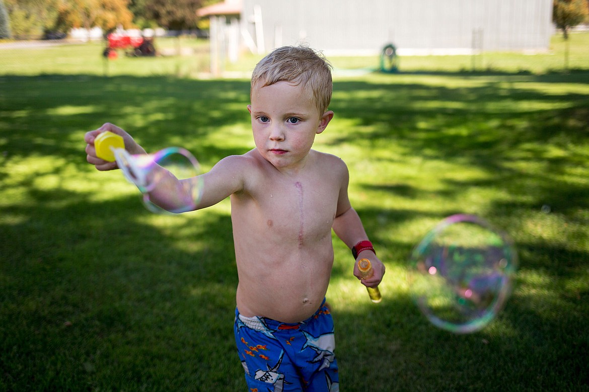 He was born with a hole in his septum and pulmonary stenosis, which is an obstruction of blood to his heart. He's spent two birthdays in the hospital. He's undergone two open-heart surgeries. A vertical pink scar tells the story of the work that has been done to keep the heart in his little chest beating like it should.