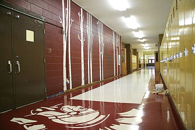 The brand-new Troy High School wall murals and tile, complete with the Troy Trojan design. (Bethany Rolfson/The Western News)