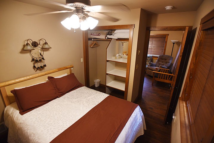 Interior a bedroom in the Iceberg Cabin at the Historic Tamarack Lodge and Cabins on Thursday, August 18, near Coram (Brenda Ahearn/Daily Inter Lake)