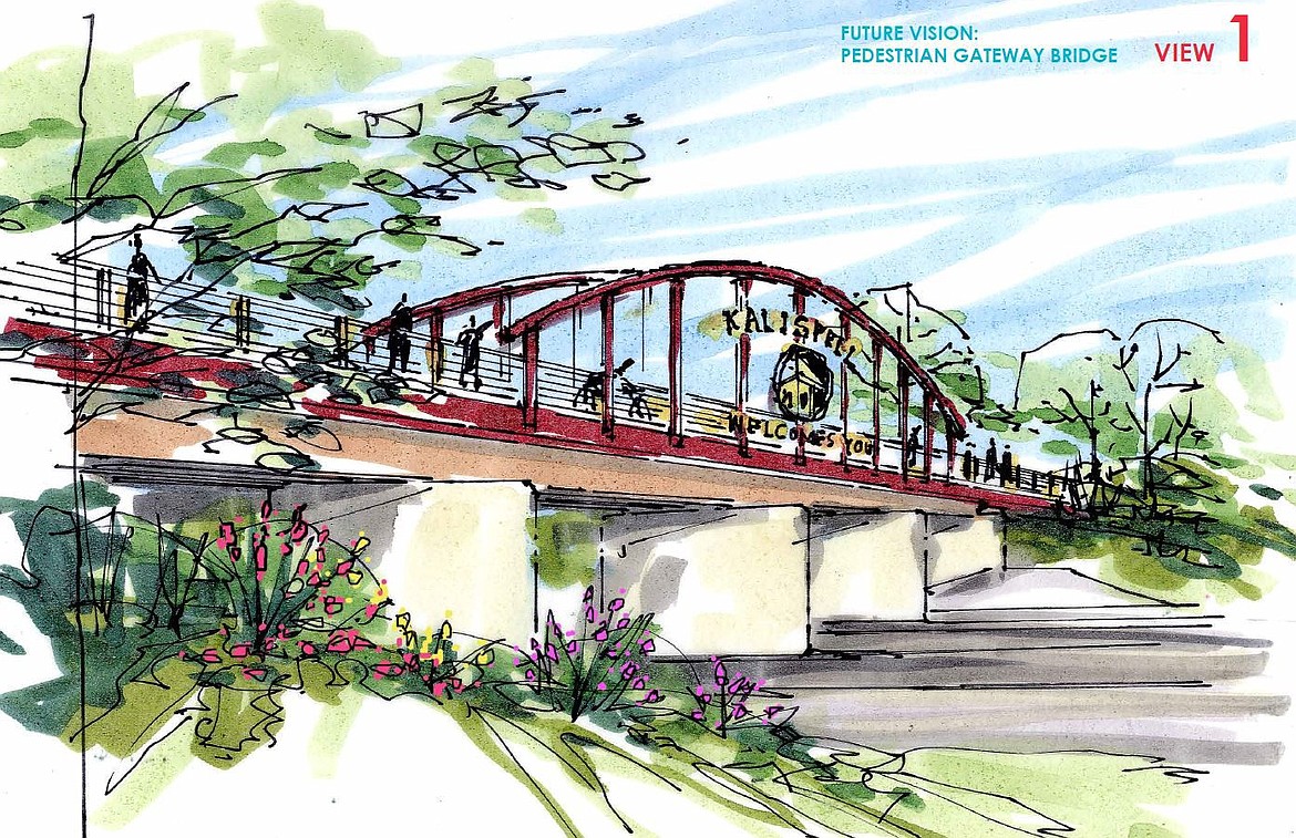 An online map showed a computer-animated image of the railroad bridge that crosses over U.S. 2 with people walking over a footbridge with an arch bearing the words, “Kalispell Welcomes You.”