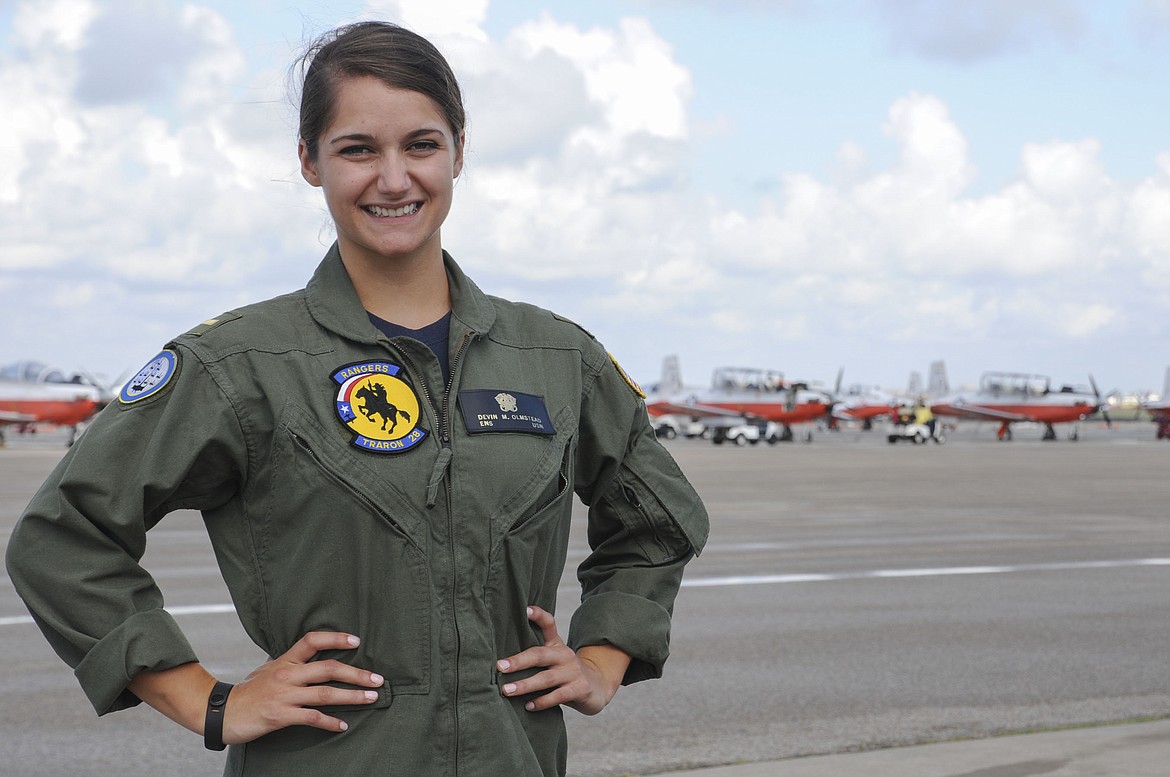 Ensign Devin Olmstead is a student naval aviator with the “Rangers” Training Squadron (VT-28), based in Corpus Christi, Texas, that operates the T-6B Texan II aircraft. As a student, Olmstead is responsible for learning to fly aircraft both effectively and efficiently in completing various missions and operations so she may become one of the finest naval aviators in the fleet.