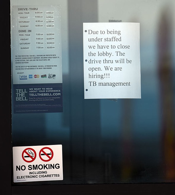 In Kalispell, Taco Bell has closed its dining room and offers only drive-through service because it can’t find workers.