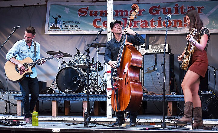 The Mike Murray Duo (Mike Murray and Chris Krager) were joined by Halladay Quist for their final song, Bury Me in Montana, at the Saturday night, August 27, concert at the Flathead Lake Brewing Company in Bigfork. The concert was the kick off for the Seventh Annual Crown Guitar Workshop and Festival. (Brenda Ahearn/Daily Inter Lake)