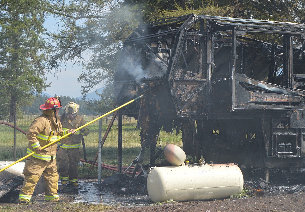 “The main concern was the propane tank. Our first concern was to cool that off. The camper was completely involved when we got here, so it was mostly defensive, looking for spotting in the wheat fields,” Evergreen Fire Chief Craig Williams said shortly after the fire.