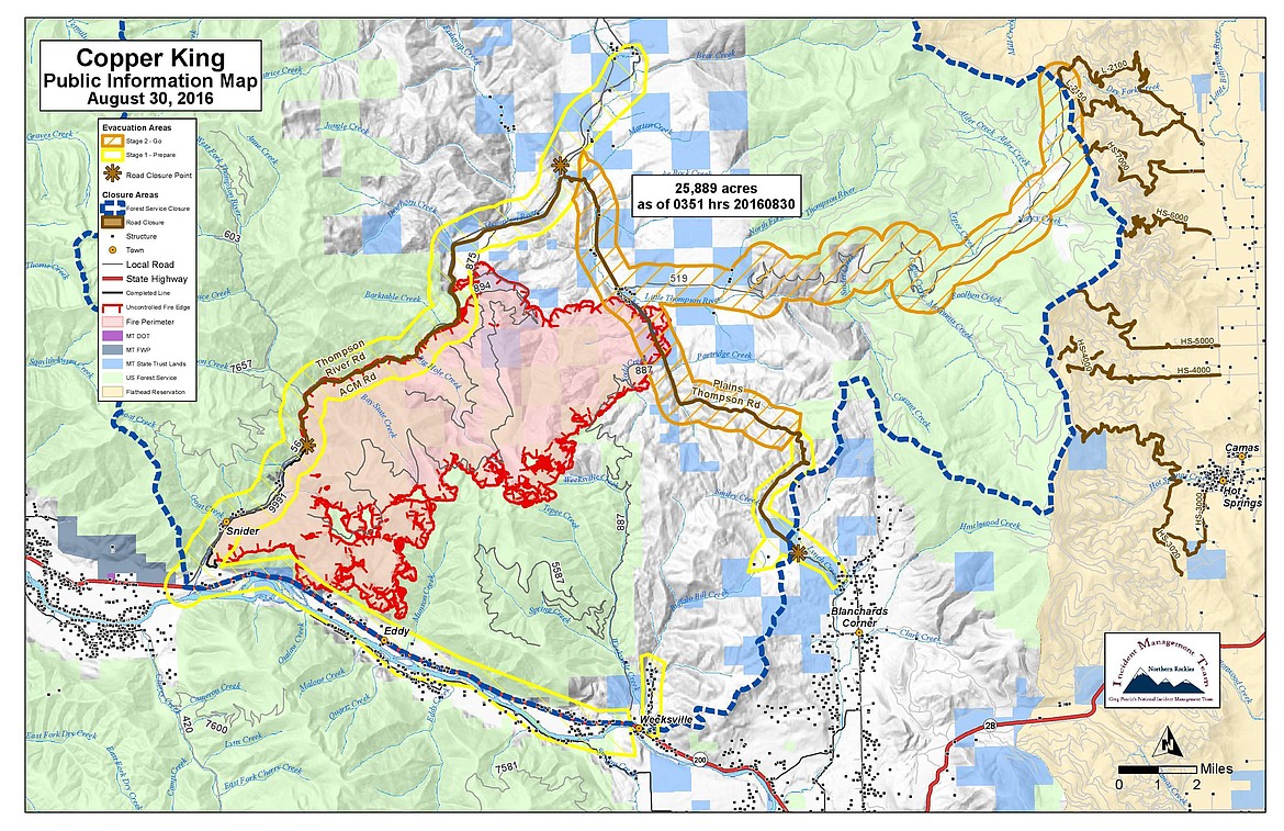 The Copper King Fire near Thompson Falls is now more than 25,000 acres and has poured smoke into the lower reaches of the Flathead Valley in the past few days.