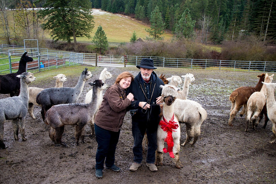The Schumachers own the Seven Stars Ranch in the hill-and-forest country just east of Coeur d’Alene — just keep driving on Yellowstone Trail after you pass Tony’s restaurant — and they do have a herd of 30 alpacas along with mini-horses, goats, chickens, cattle and even two towering llamas to guard everyone on the 40-acre spread.
