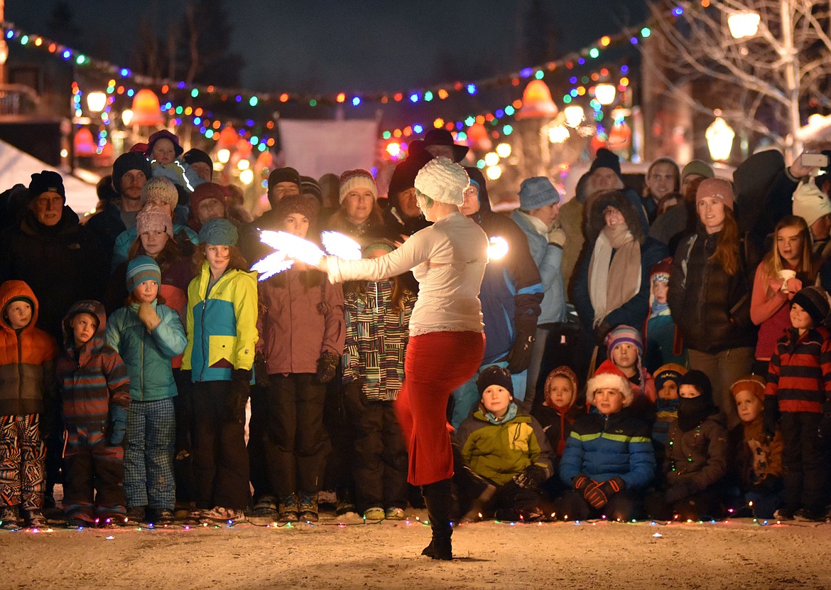 A member of WhiteFire fire dancers performs on Central Avenue Friday night during the Whitefish Christmas Stroll.