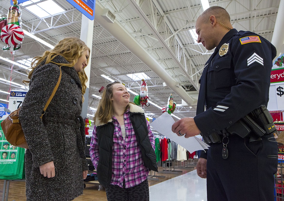 Before heading out to pick up Lizzy, the Andersons joined other law enforcement and emergency personnel at the Post Falls Police Office for a briefing, where they were handed information about Lizzy and what her family members would like for Christmas. The information also contained another, "Secret Santa," list to be given to volunteers who shopped for presents to give an unaware Lizzy.