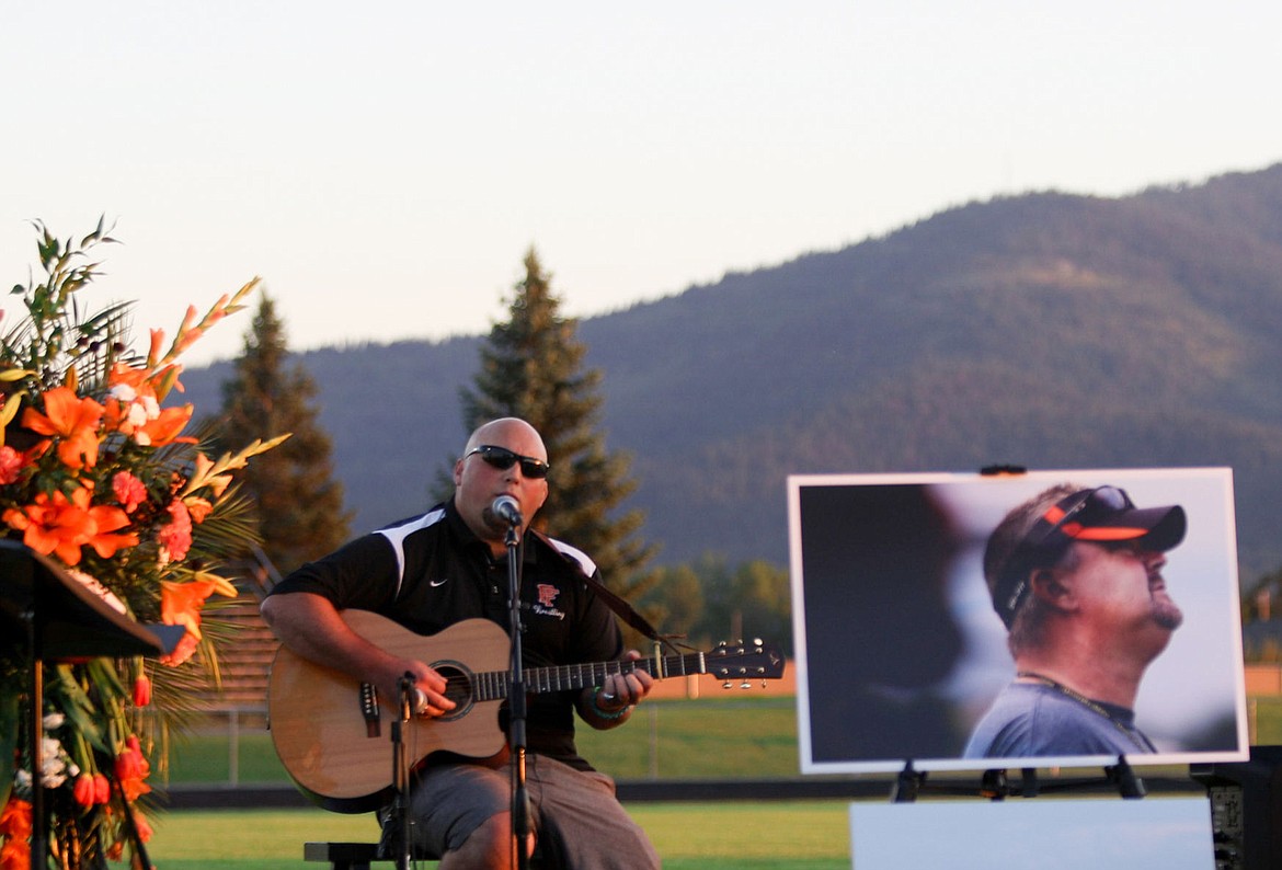 As a tribute to colleague Jeff Hinz, the former Trojan football coach who died from cancer in July, Reardon performed “One More Day” by Diamond Rio at Hinz’s memorial service at the Post Falls High football field.