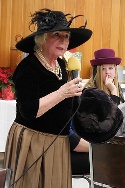 Mary Faux gave a rousing show of (a small part of) her hat collection with an uncanny sense of intuition for matching the right hat for each recipient.