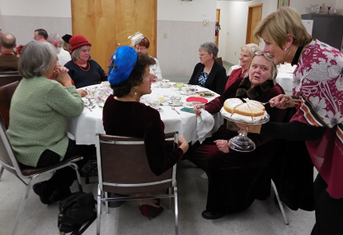 Betty Overland played piano as the guests arrived and Sandy Jamieson and Darleen Coon and the volunteers served up a British feast served with beautiful china tea cups and saucers.