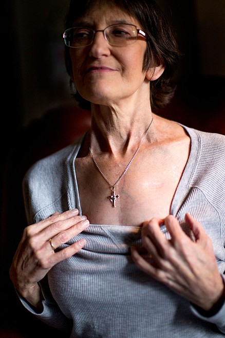 It's as though the long scar along her sternum doesn't even exist.